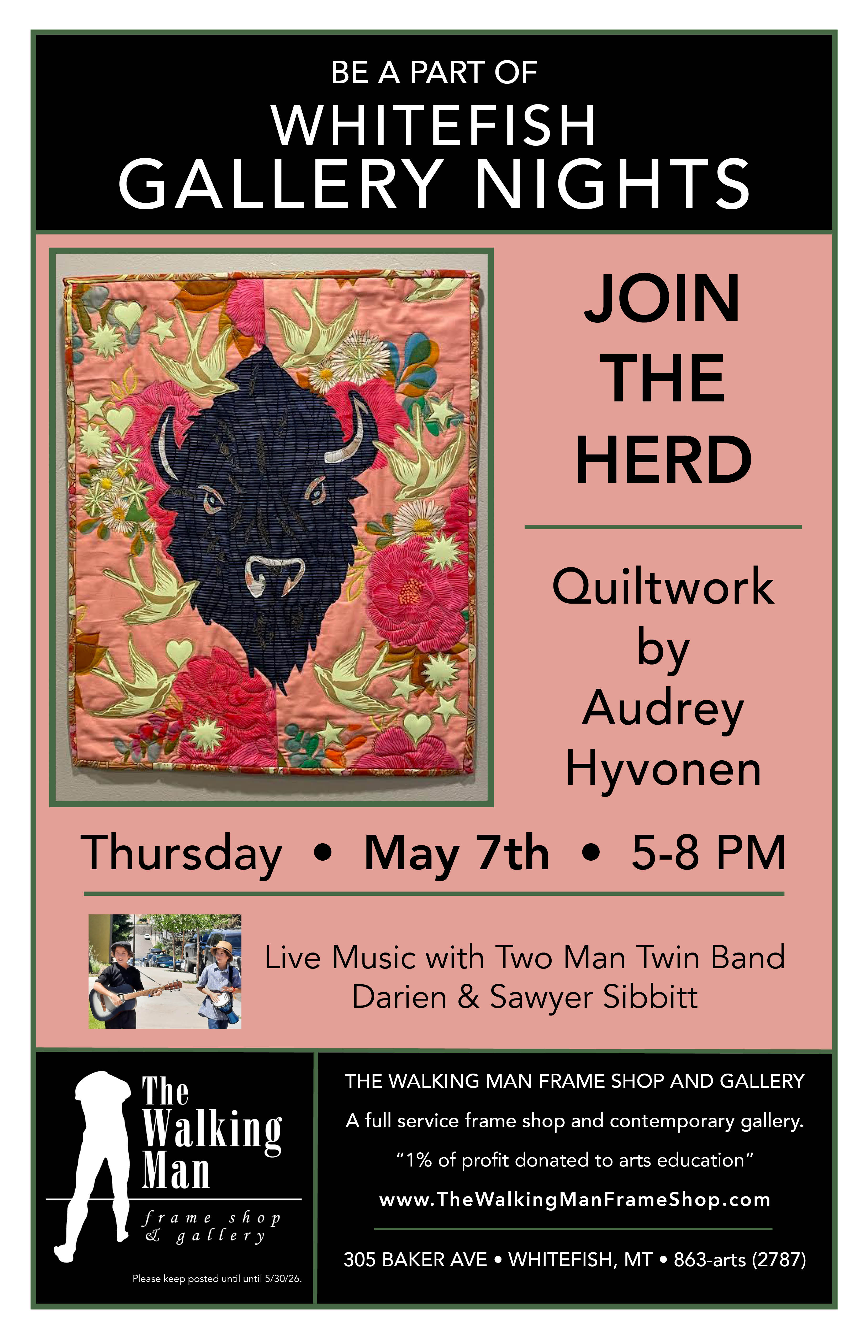 Join us for our first Gallery Nights event of the 2026 season!! Thursday, May 7th, 5-8PM. Fine art, light refreshments & live music with the Two Man Twin Band-Darien and Sawyer Sibbitt. For more information call 406-863-2782 (ARTS). More information of Whitefish Gallery Nights, go to http://www.whitefishgallerynights.org
