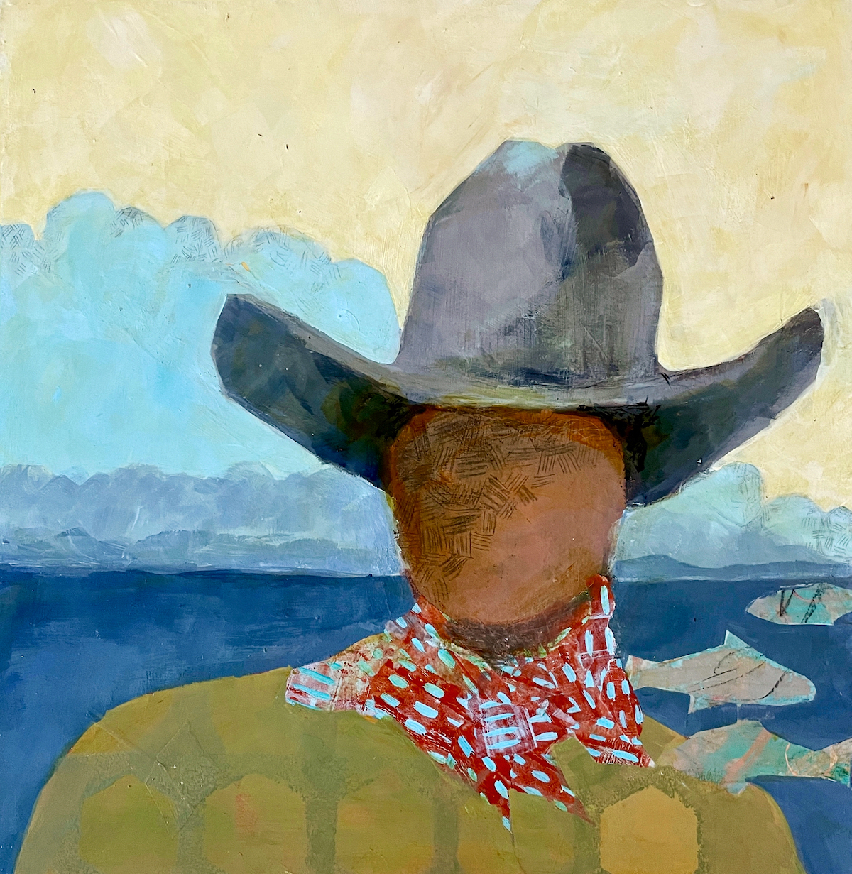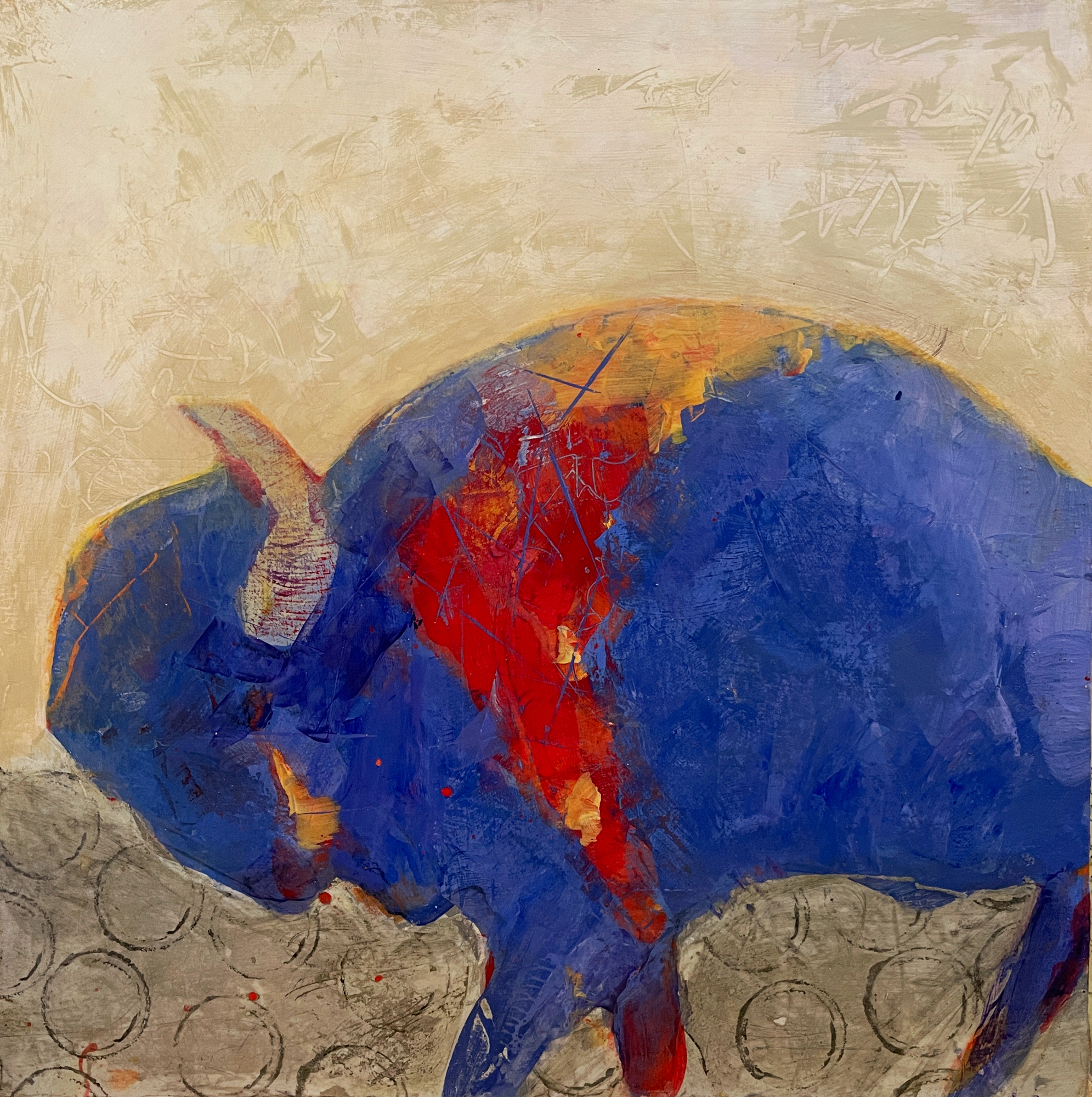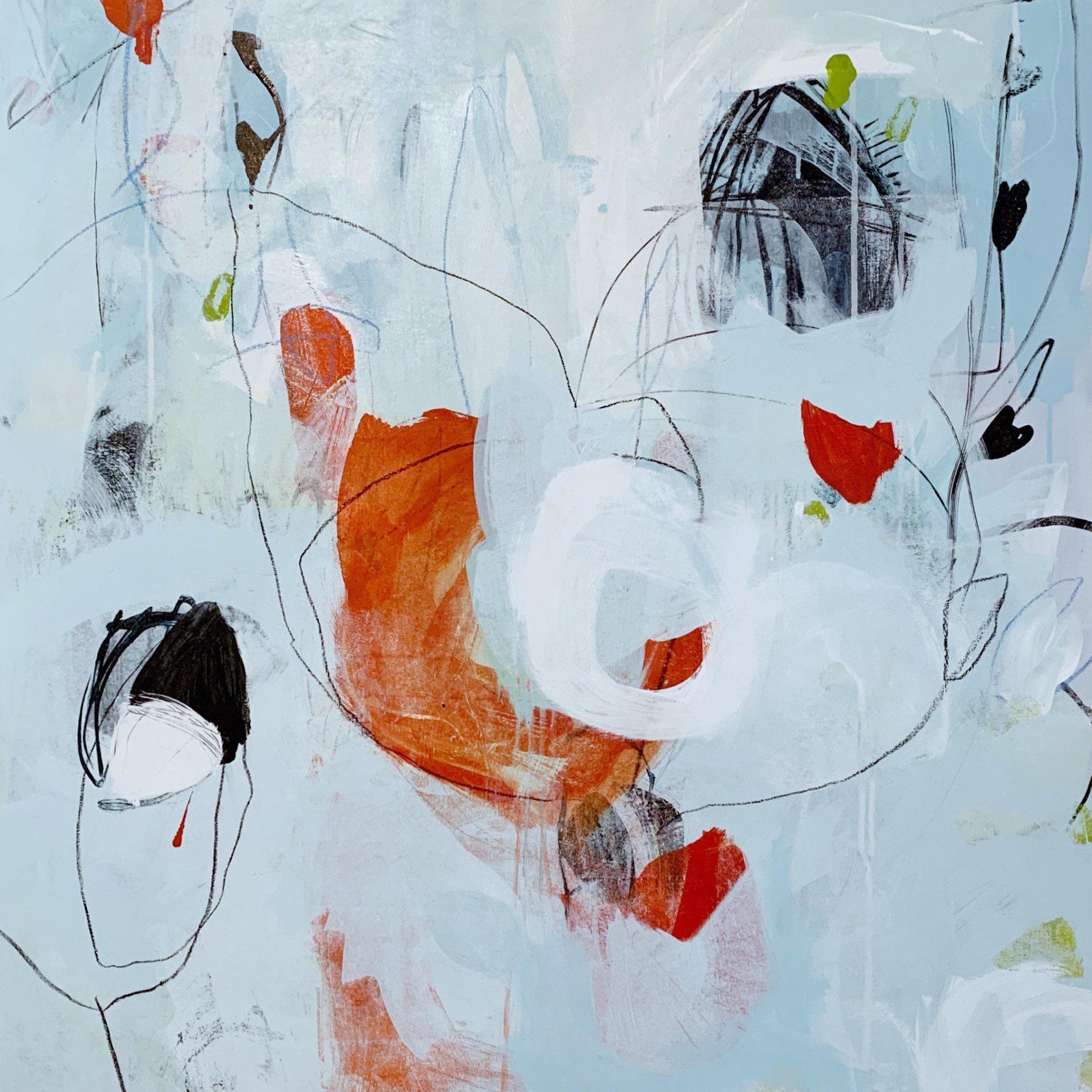 Eileen Corrigan Valazza—-Eileen grew up in the suburbs of Washington, DC, and attended the College of William and Mary in Virginia, where she received a BA in Studio Art and Government in 1996. She participated in group shows in Washington, DC and Virginia in the early 2000s. Eileen spent many years living in Seattle, and currently lives in Whitefish, Montana with her husband and two young children. “I began making art again in 2019 after a 15 year hiatus. My paintings are inspired by the natural world, filtered through the lens of my emotional experience of motherhood and world events. The results show joy and beauty, coupled with a sense of something reckless and unsustainable. I paint intuitively using acrylics, oil, wax, and ink.”